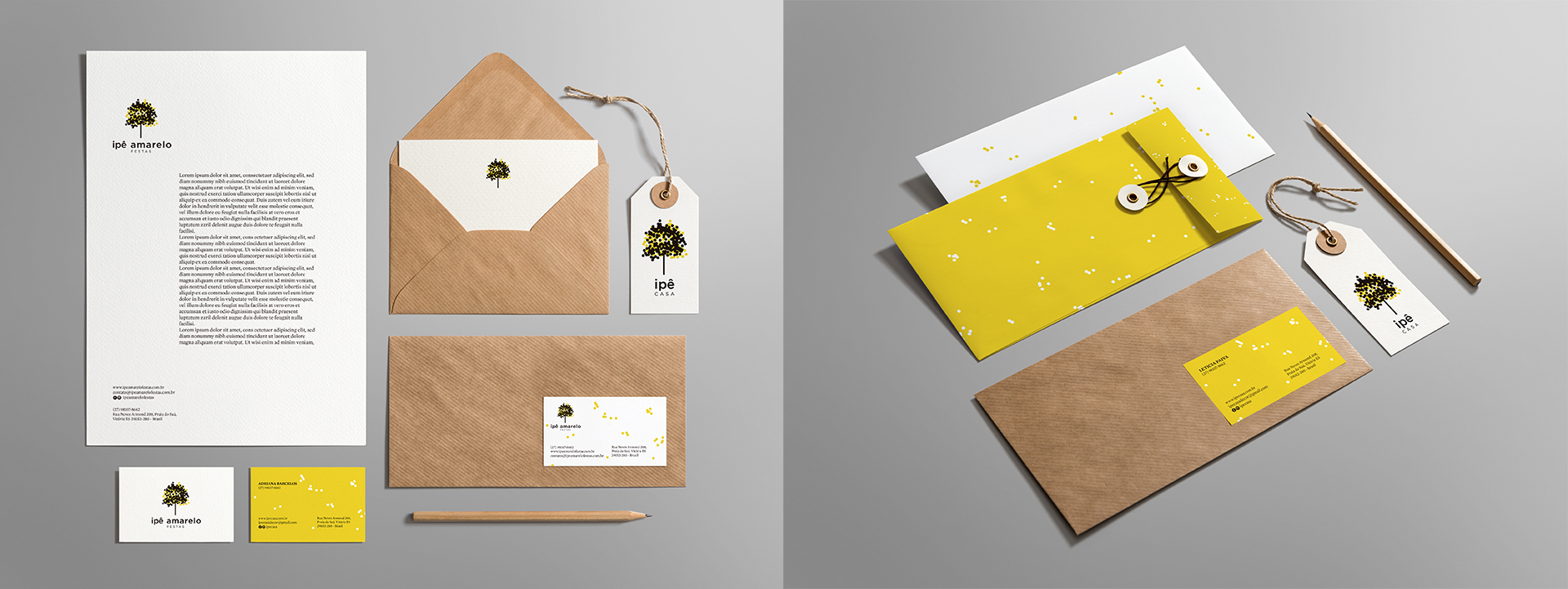 Como elemento secundário um padrão que vem da fragmentação e repetição dos ‘pompons’ do ipê, representados por pequenos círculos amarelos, que transmitem leveza e resultam em uma textura singular.